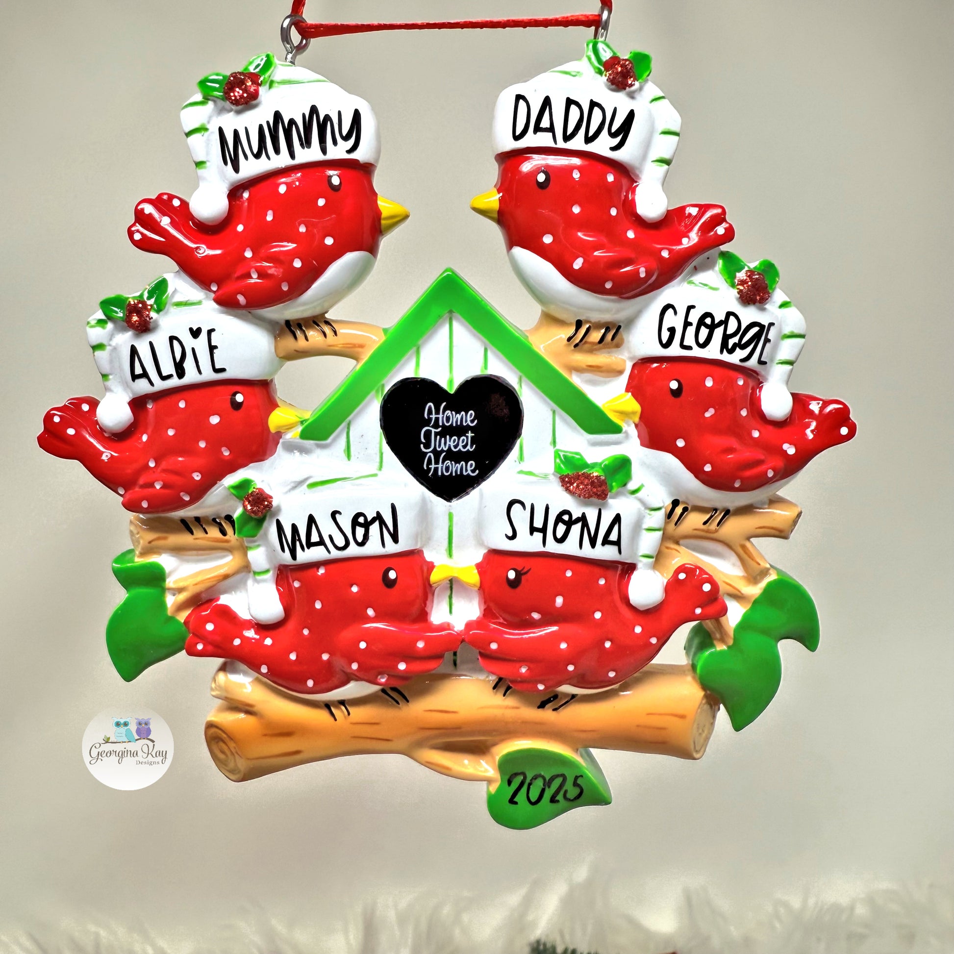 - Ready to hang with a red ribbon