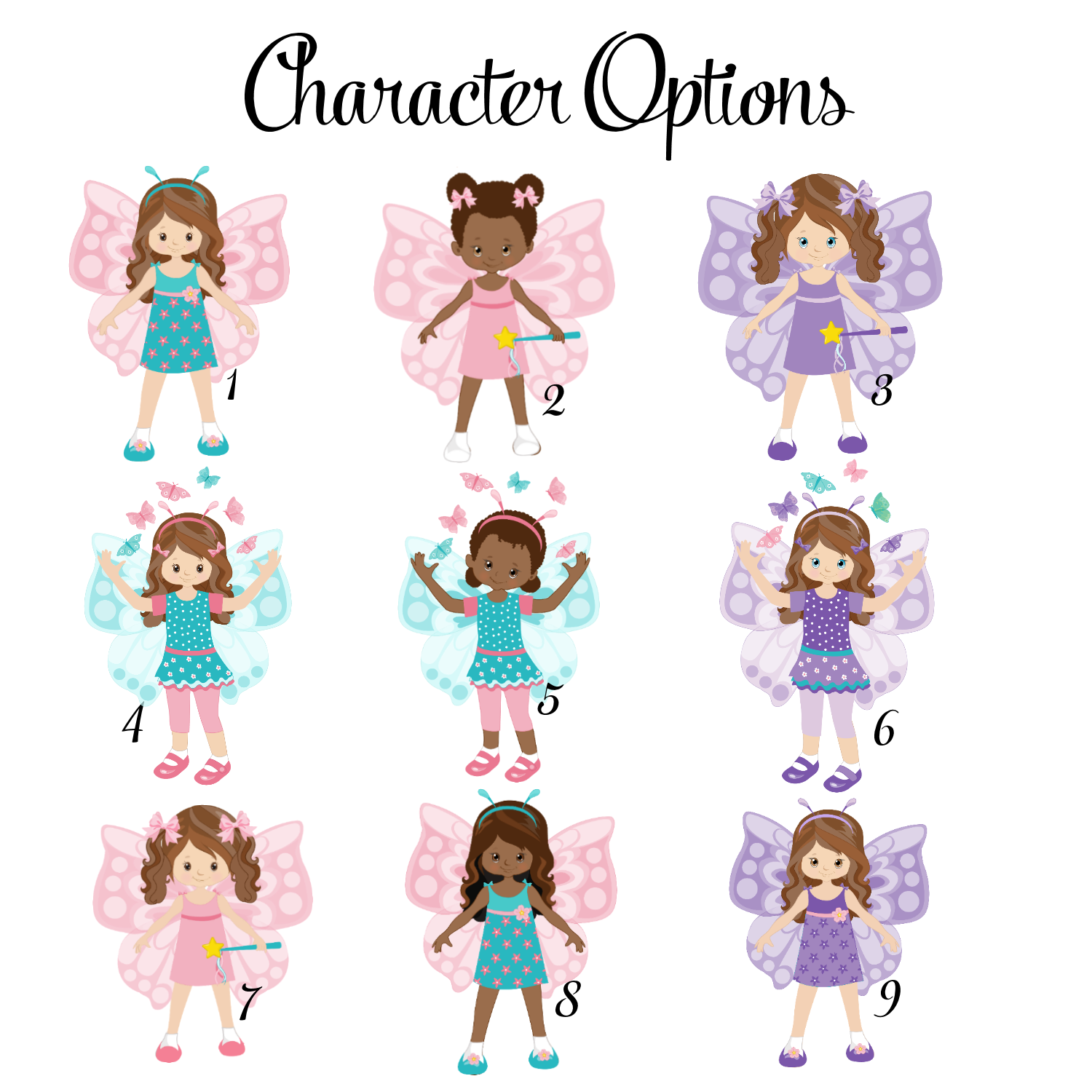Choose from a range of sweet fairy character designs