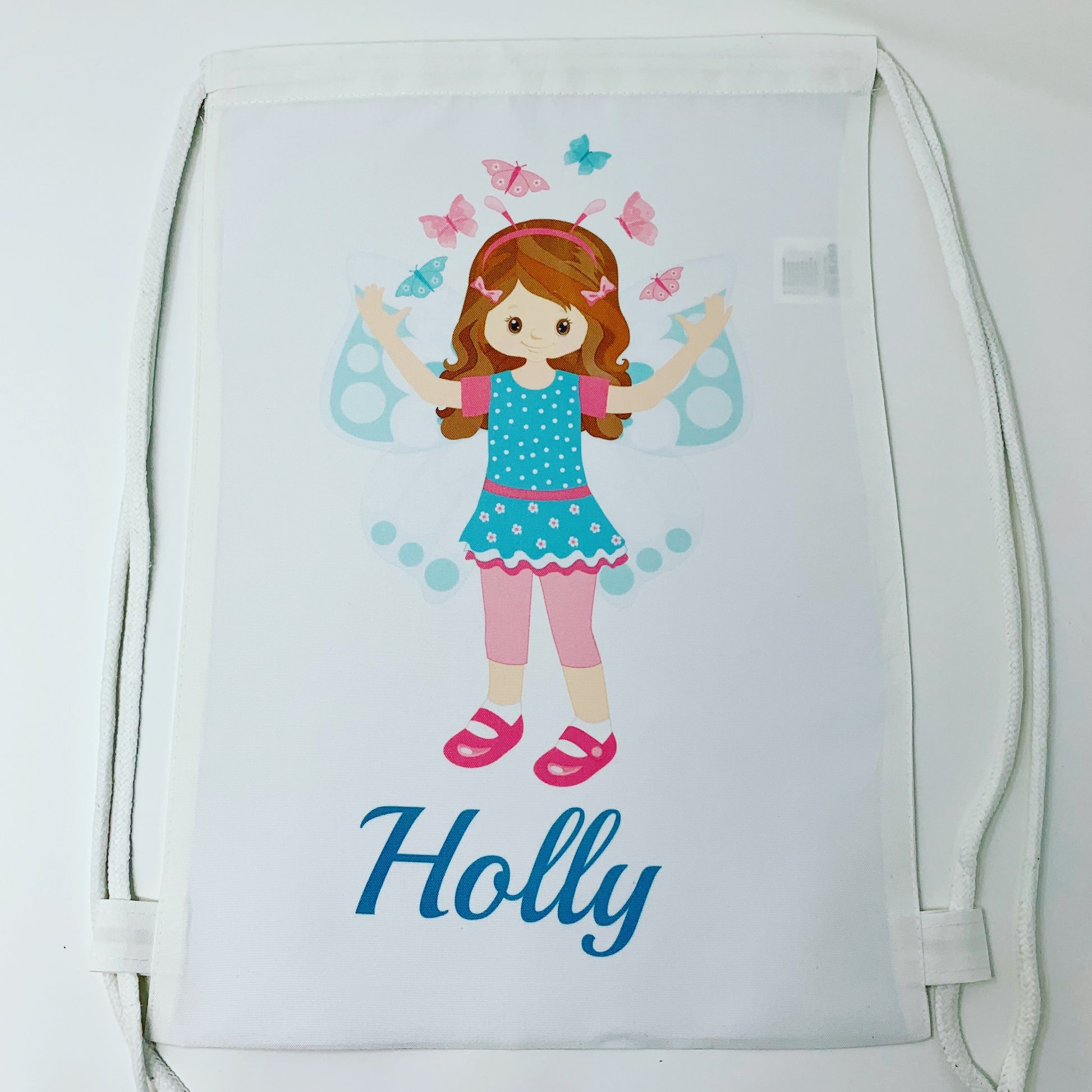 This personalised fairy drawstring bag is perfect for carrying toys, nursery essentials, PE kits, or treasures collected along the way.