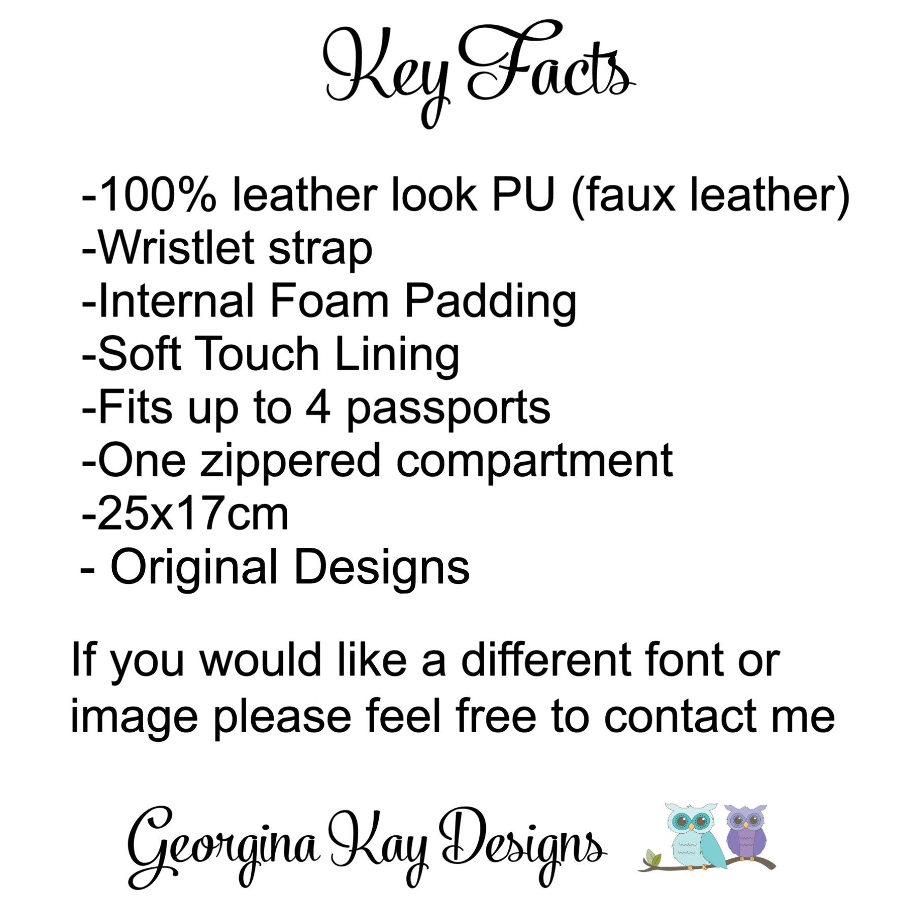 - Enter your desired text exactly as you’d like it printed. It does not automatically include “travel documents.” For example: “Sophie’s Travel Adventures,” “Travel Docs,” “Special Birthday Trip,” etc. Please be specific.
