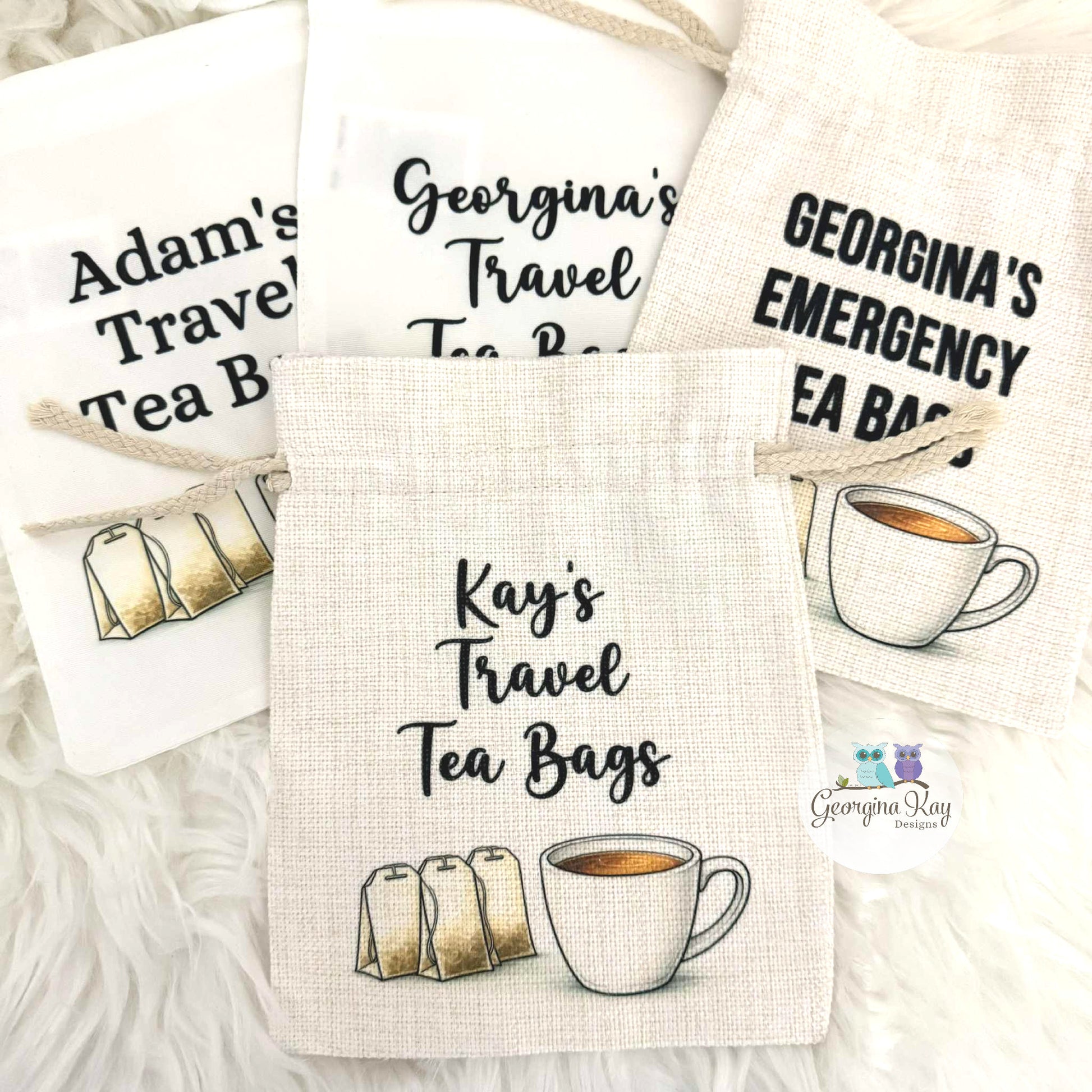 Each teabag bag is personalised with any name and the wording “travel teabags” (wording can be changed if preferred please let me know at checkout), making it a truly special tea themed gift.